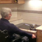 Lifts can also improve independent living accessibility, such as in transition classroom training kitchens.  You can use our lifts to make cooking ranges, sinks and wall cabinets more accessible to individuals who need to use wheelchairs.  These electrically powered lifts operate by push button or by using an infrared remote.  They come in three different sizes, to help you lift one or more cabinets at a time.  The lift has a sensor which will stop the cabinet if it bumps into anything, as an anti-crush safety measure.  Click here to learn more about our independent living lifts.